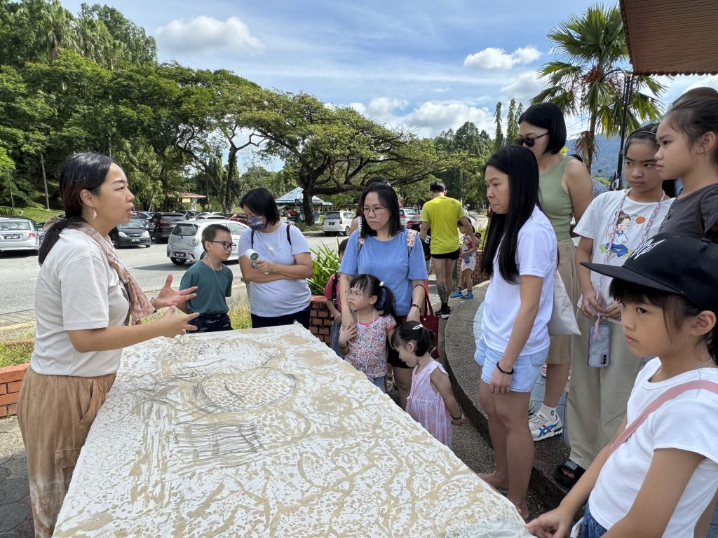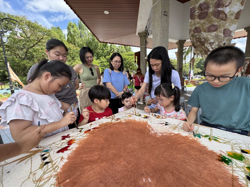The event was initiated and led by the Look Port Weld project director Choong Pai Chee and Kuala Sepetang local artisan Go Tyan Yin , who has been tirelessly promoting the traditional natural fabric dyeing technique known as “Ni Siap” through demonstrations and workshops both within and beyond Kuala Sepetang. Look Port Weld focused on teaching traditional tie-dye fabric-making using mangrove bark, known locally as “Ni Siap.” “Ni” means dyeing, and “Siap” refers to the texture left on fabrics after dyeing. The sharing session began with each invited artisan conducting an introductory workshop in their respective crafts. Kak Tanti guided a traditional batik painting session, Eliza showcased eco-printing on fabric, and Cibabond demonstrated contemporary batik art-making techniques. Each workshop concluded with a collaborative creation, where participants worked alongside their mentoring artisan to integrate the local “Ni Siap” technique into their projects.
