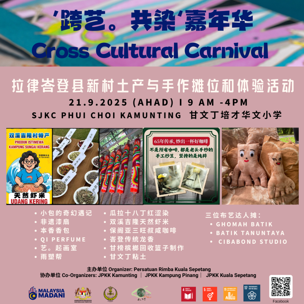 趁着马来西亚日的学校假期尾声,看见十八丁联合拉律峇登县村委会即将于9月21日(星期日)位于甘文丁培才华文小学主办一场跨艺共染嘉年华。